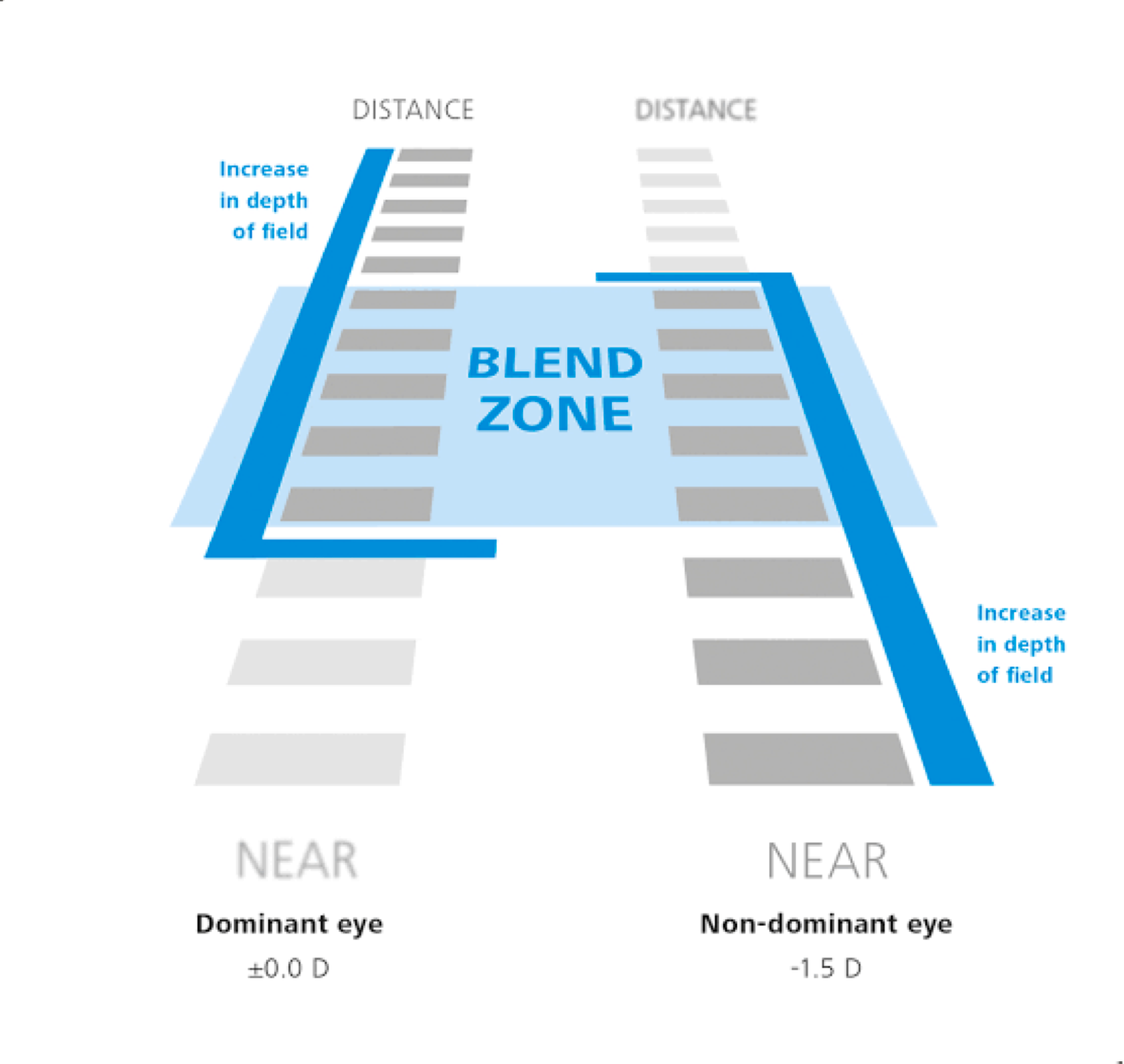 - Because of the “Blend Zone” the patient maintains depth perception unlike in mono-vision