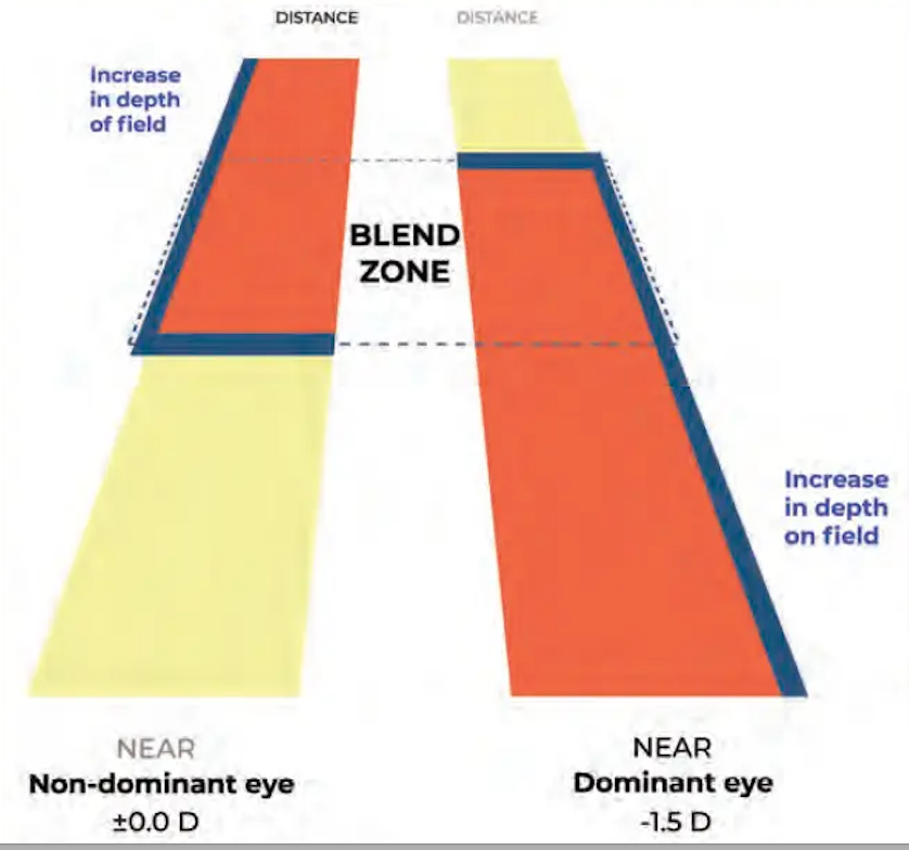 As these lenses has a range of vision they can be implanted with different focal points in each eye giving patients “Pseudophakic Blended Vision”- very similar to